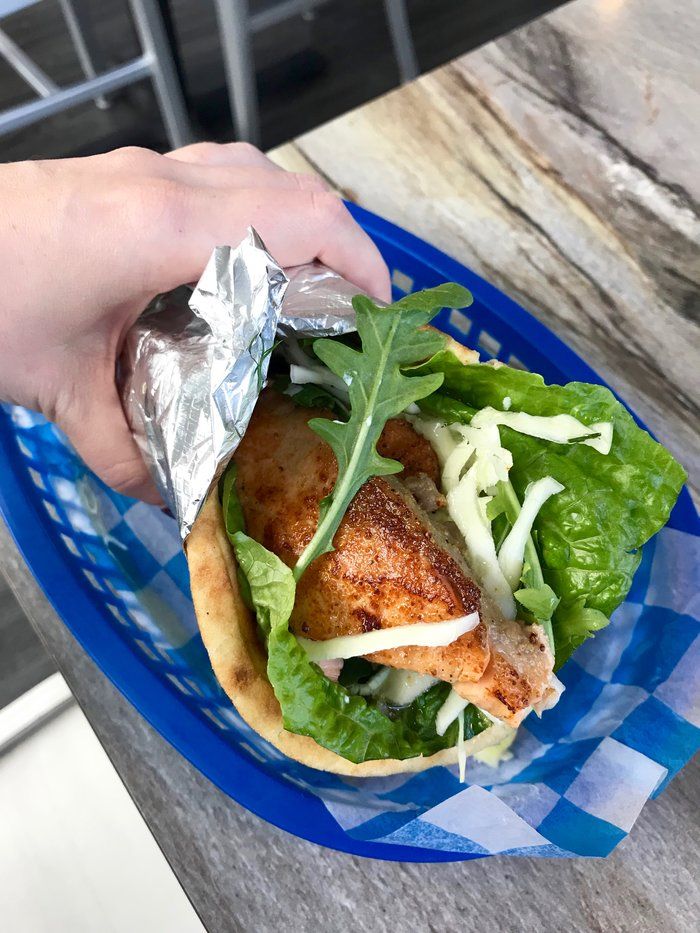 Go-to order: Falafel pita with lettuce, tomato, red onion, and tzatziki