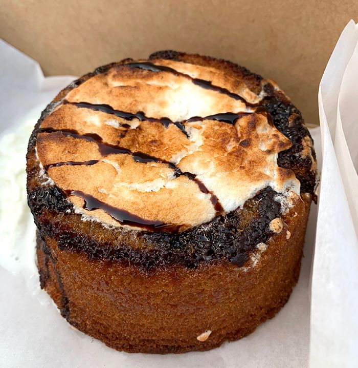 - S’more lava cake ($6) – graham cracker cake filled with chocolate ganache, drizzled with chocolate, and topped with marshmellow