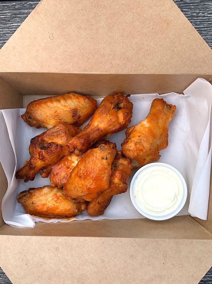 - Smoked buffalo wings ($10) – served with ranch or blue cheese dressing