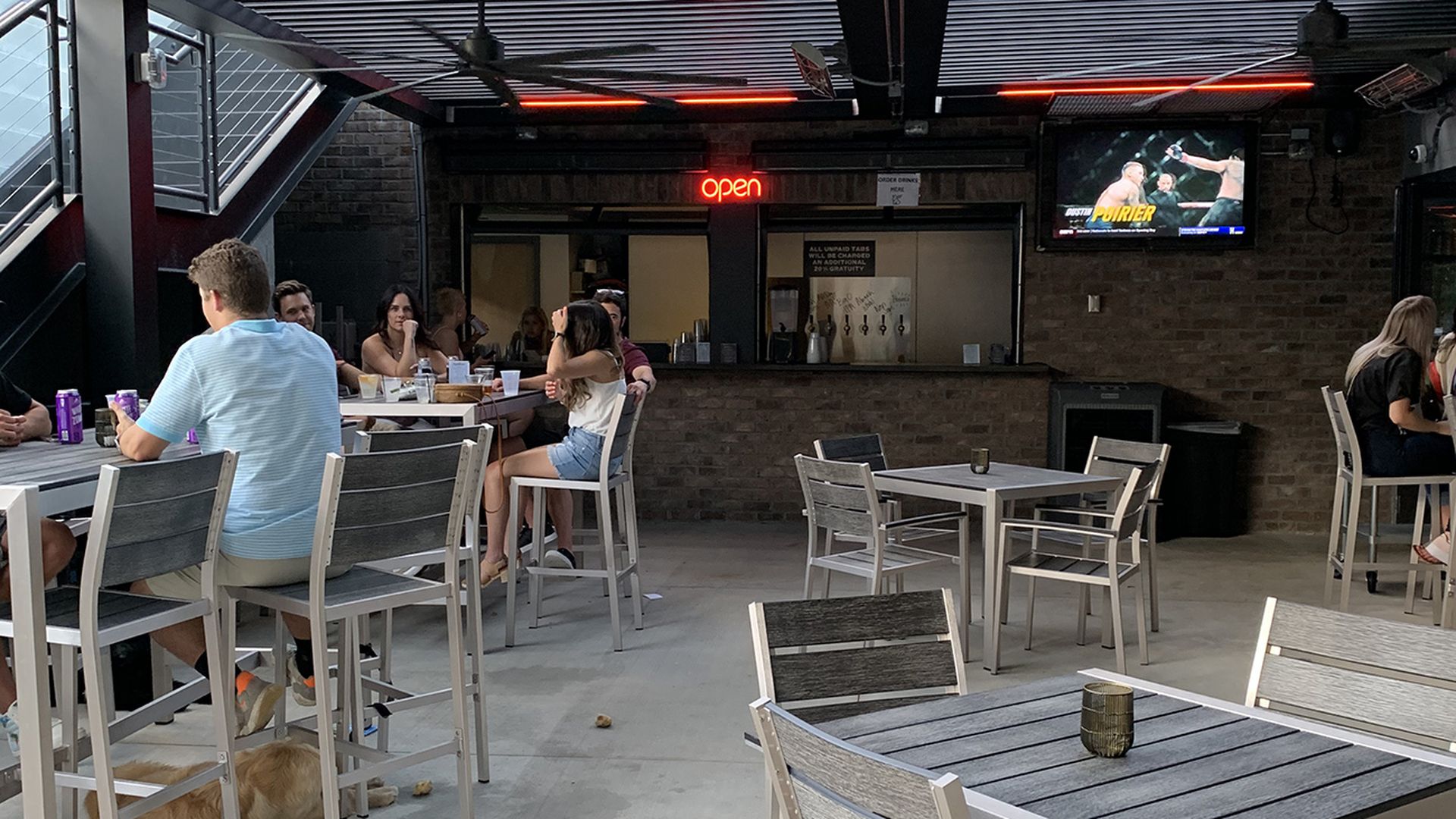 The 3,000-square-foot space has an open-air vibe with patios outside on the ground floor and on the rooftop. There are also two cabana-style bars that serve customers from outside. The bar is dog-friendly, too.