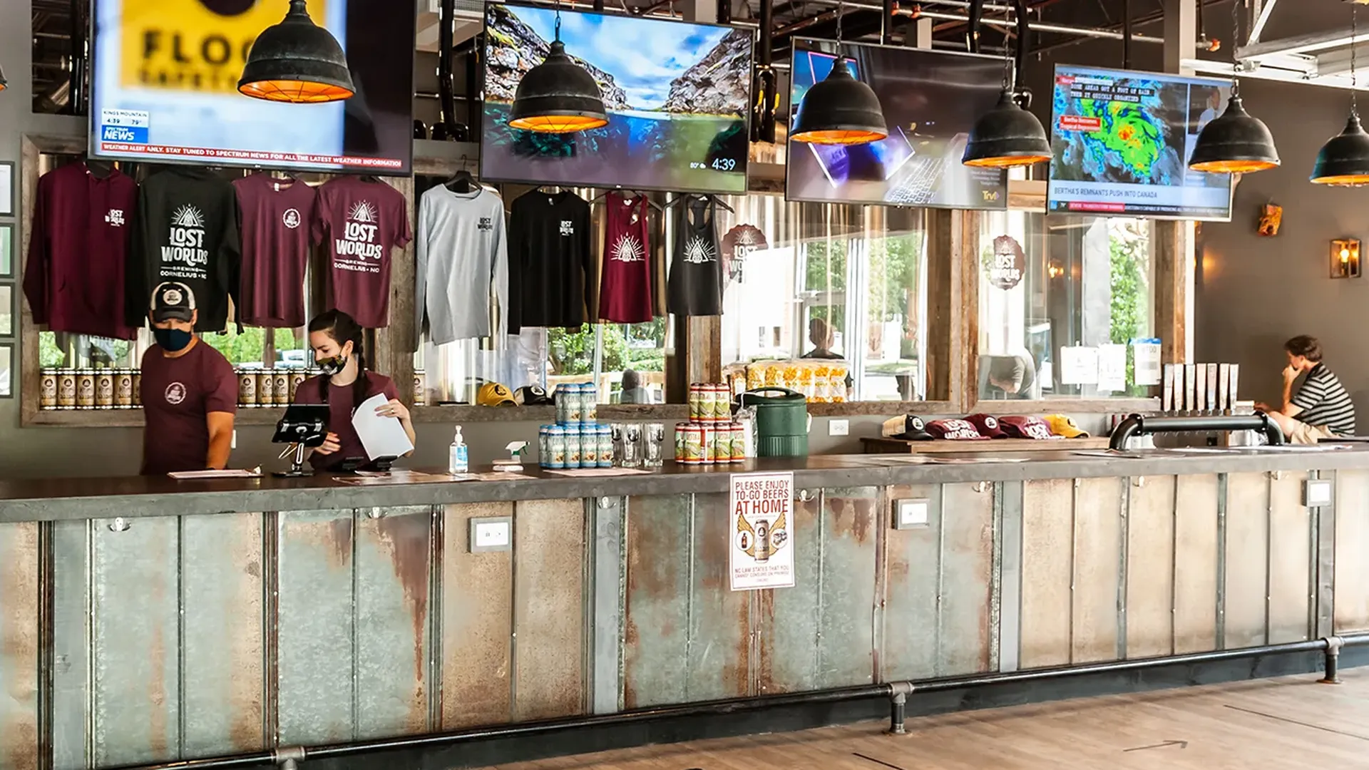 Social distancing guidelines: Lost Worlds asks visitors to wear masks inside when they move about the brewery. Tables are spaced six feet apart, and sanitizer is provided at all entrances. Lost Worlds has a 3,000-square-foot beer garden that allows space for social distancing. The brewery offers tableside service, minimizing the need for guests from non-related groups to interact.