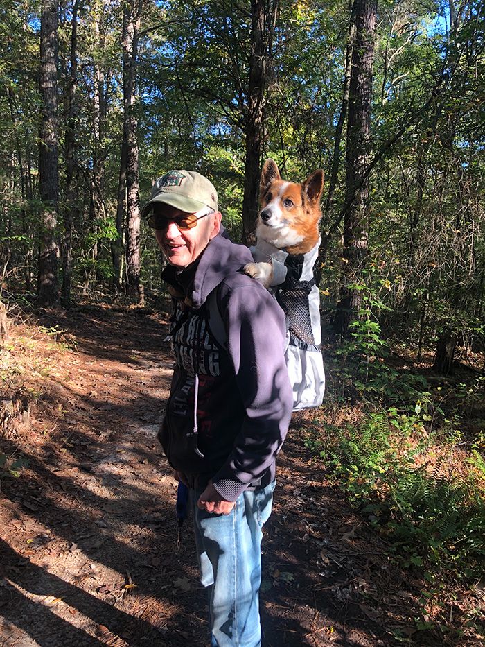 Socks, a mini Corgi, isn’t as much a fan of backpacking as he is of being carried in backpack.
