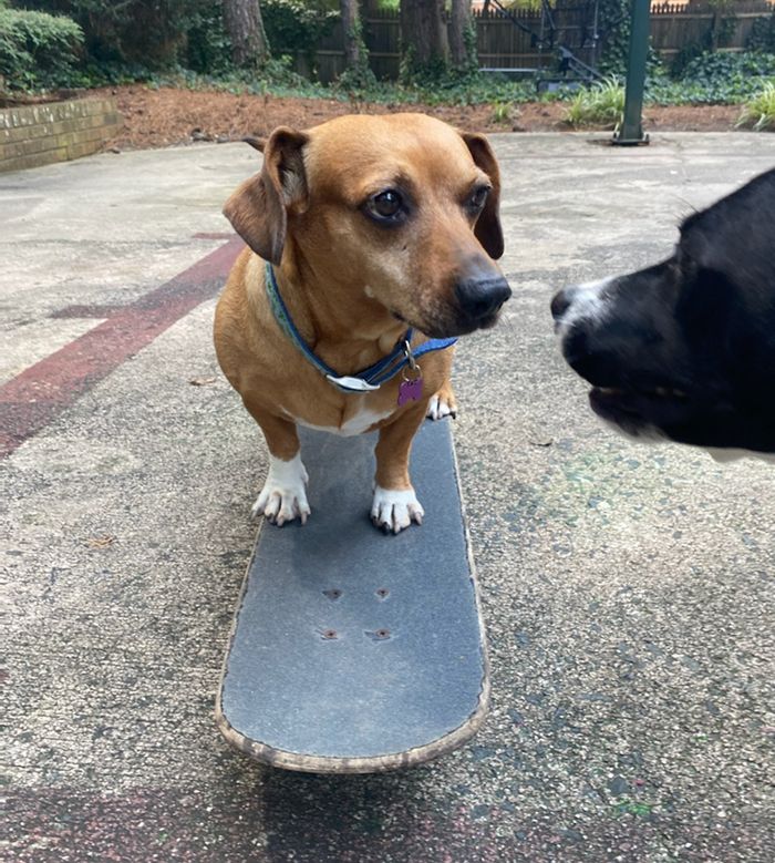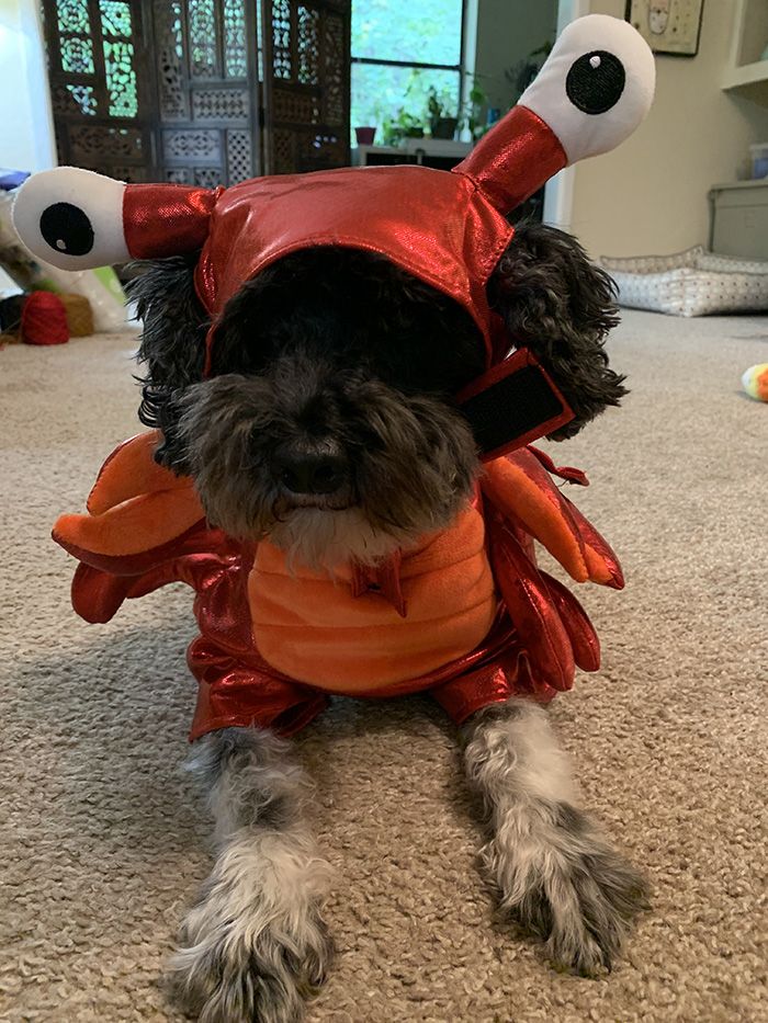 LC, which is short for Land Crab, is an important doggo. She has a job as a therapy dog and visits elementary schools and assisted living centers (pre-Covid).