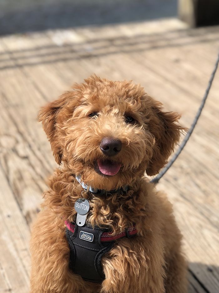 Sutton, the mini goldendoodle, is named after her one of her parents’ favorite spots in Chapel Hill: Sutton’s Drug Store.