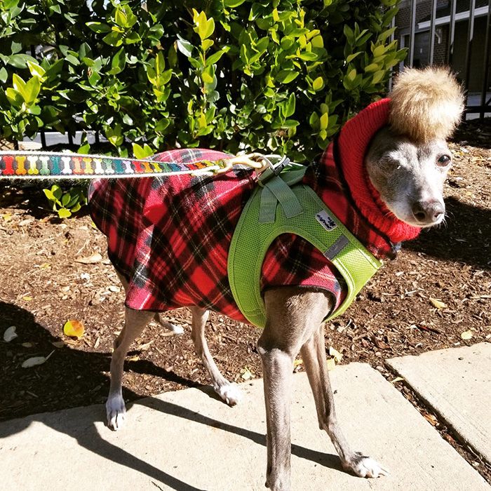 This stylish Italian Greyhound hates cold winter weather but loves the fashion. Benz is runway ready. Looking for fall fashion, Benz? Check out this fall trend shopping guide.