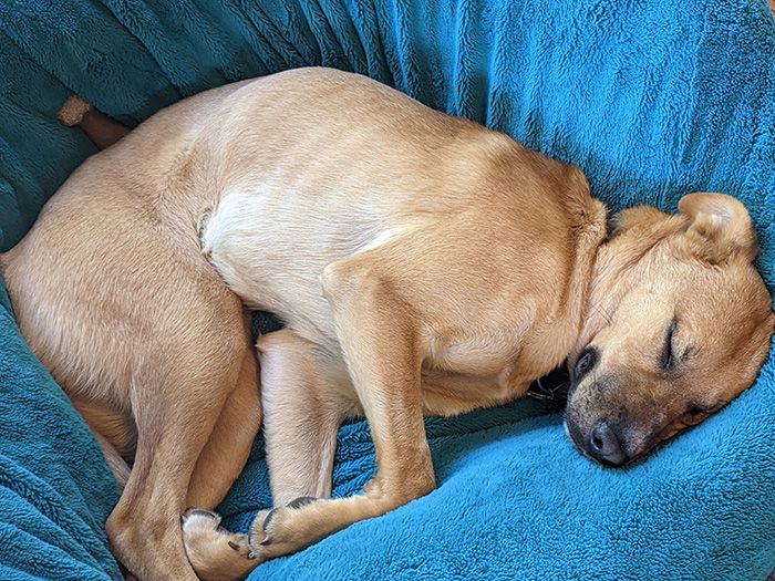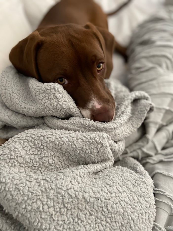 Daisy is a #QuarantineFosterFail, and it’s clear why. Mom Carrie says Daisy is her daughter’s BFF and loves to be comfy. “Most of the time, I think she’s a cat.”