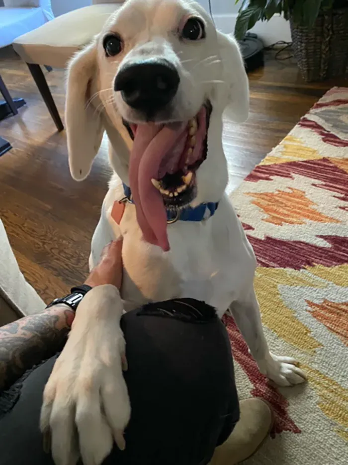 Fun fact: On Crush’s first night home, Michael says Crush put himself to bed. “Just walked himself into his crate and passed out.” Good boy had a big day.