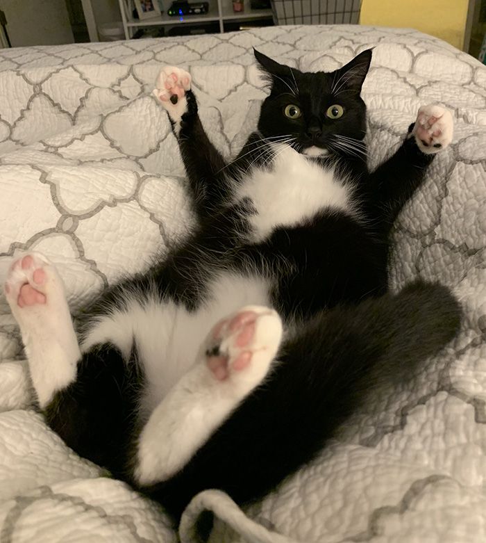 This quarantine kitty loves to sleep on her back and annoy her big brother, Leo.