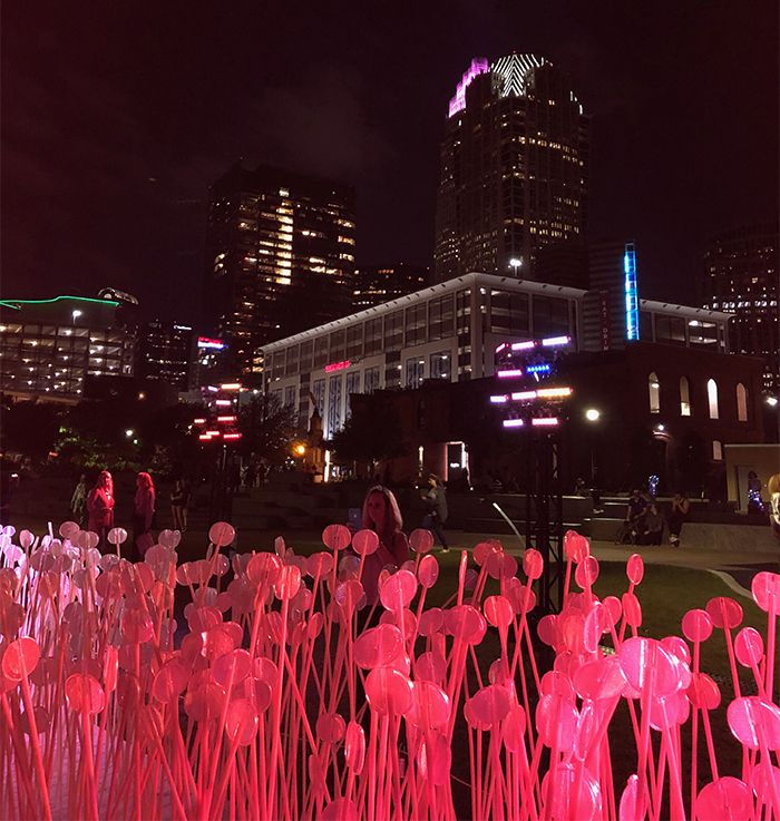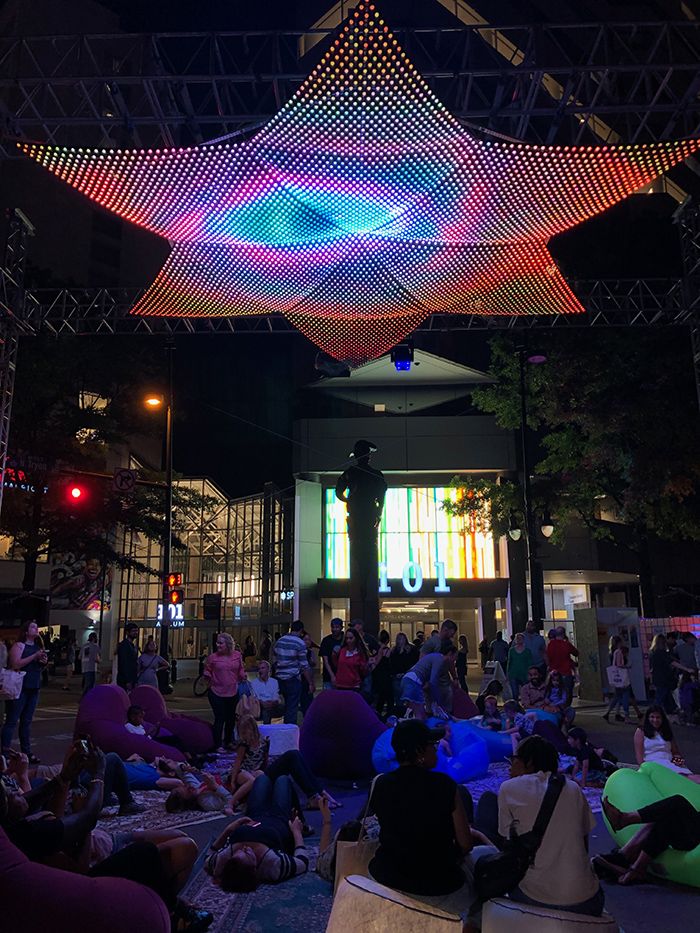Giant inflatable bunnies as part of artist Amanda Parer's "Intrude" public art exhibit. Photo: Katie Levans/Axios