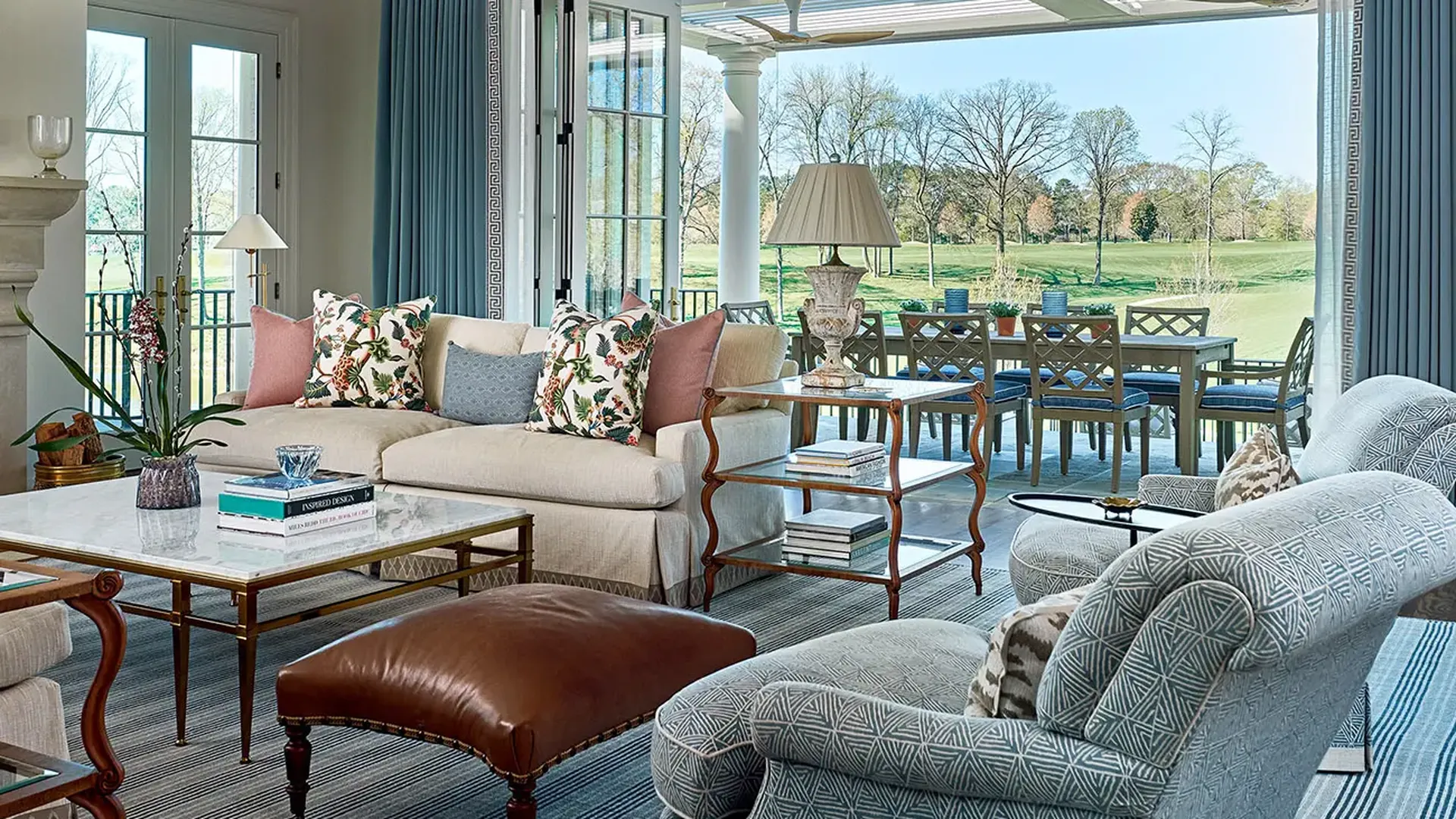 Staycation: When you walk into the main family living room, you get a view of the golf course through the accordion glass doors. The view combined with the design make it feel resort-like.