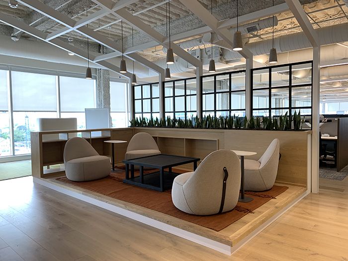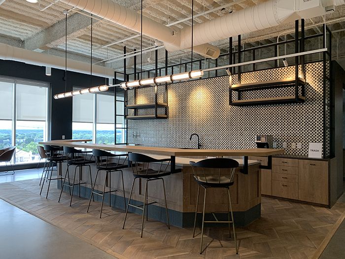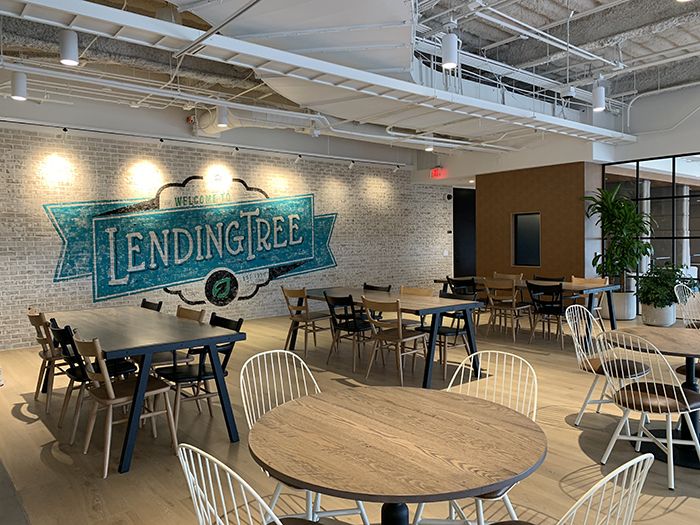 Details: The open-concept space is filled with plush couches, small gathering spaces, live houseplants, artwork by local artists, custom furniture, break rooms with cold brew taps and dozens of other features to make it feel homey, says Kelsey Tennyson, a special projects associate at LendingTree.