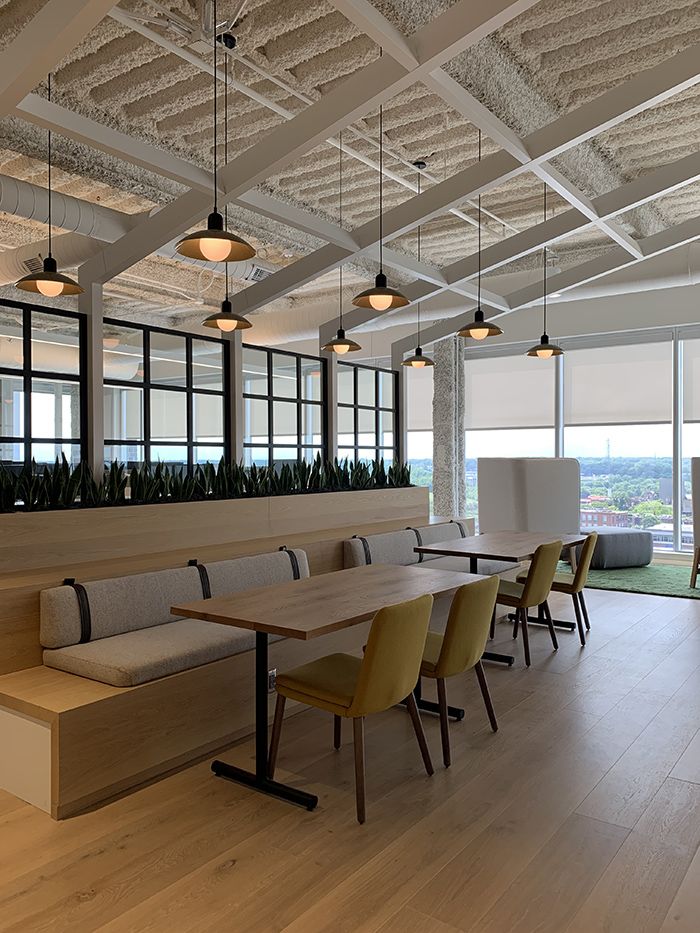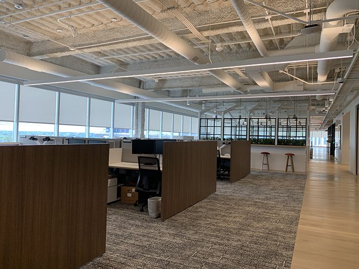 The space was already in the works long before the pandemic. But LendingTree did design a few elements of its new space with Covid in mind, Tennyson says, including the addition of partitions between workspaces. LendingTree is telling employees they can come back when they are comfortable doing so.