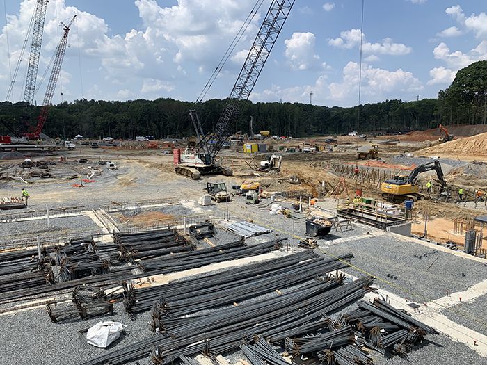By not-so-quietly, I mean crews are literally hammering through tons of rock and earth under the scorching South Carolina sun. Construction cranes recently began placing dozens of massive steel beams into place every day. Mounds of lumber, pipes and wires pile up atop smoothed-over red dirt that was once crowded with huge trees.