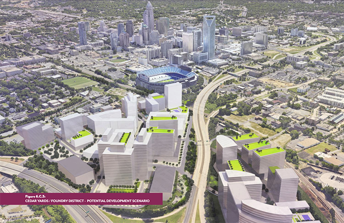 And on land surrounding Bank of America Stadium, the plan imagines “center city’s next great urban mixed-use neighborhood.” Much of that includes the redevelopment of the Charlotte Pipe & Foundry land, which City Council approved in December.