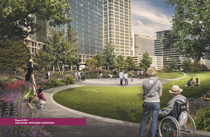 - But the plan has an even bigger idea, one that’s been discussed for years: a new public space to be built on top of the freeway, with mixed-use buildings alongside it.
