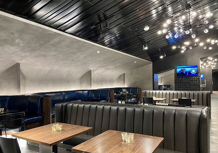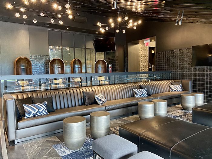 - The player lounge includes a residential style kitchen with a large communal island and café seating, a “living room” area and media wall as well as bar-height banquette seating with charging and connectivity built in.