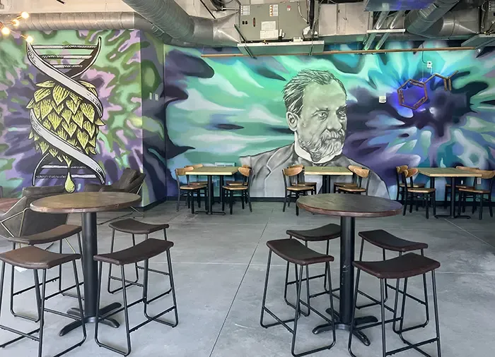- The brewery has indoor and outdoor seating and fits about 85 people.