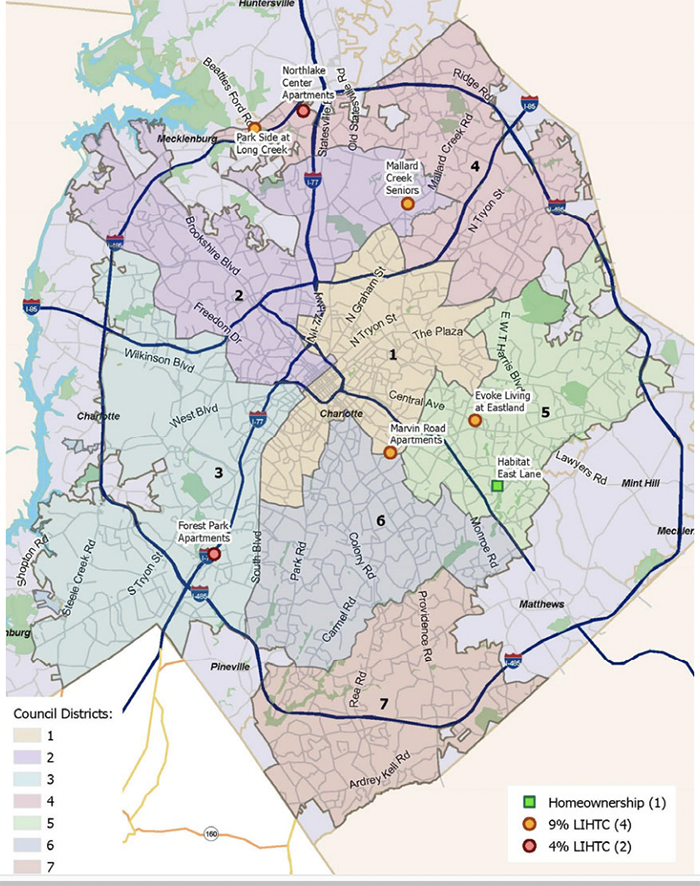 Meanwhile, none of the proposed projects are inside Council Districts 6 or 7 (one is on the border of District 6), which cover southeast Charlotte and Ballantyne, a fact which several council members have expressed concern over.