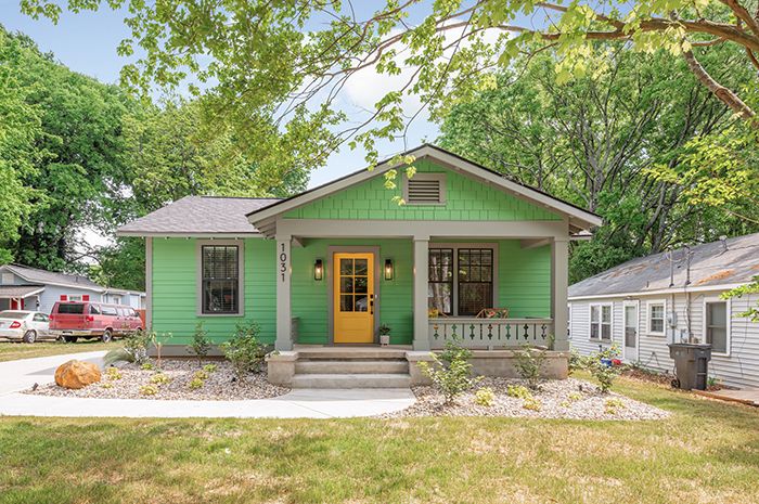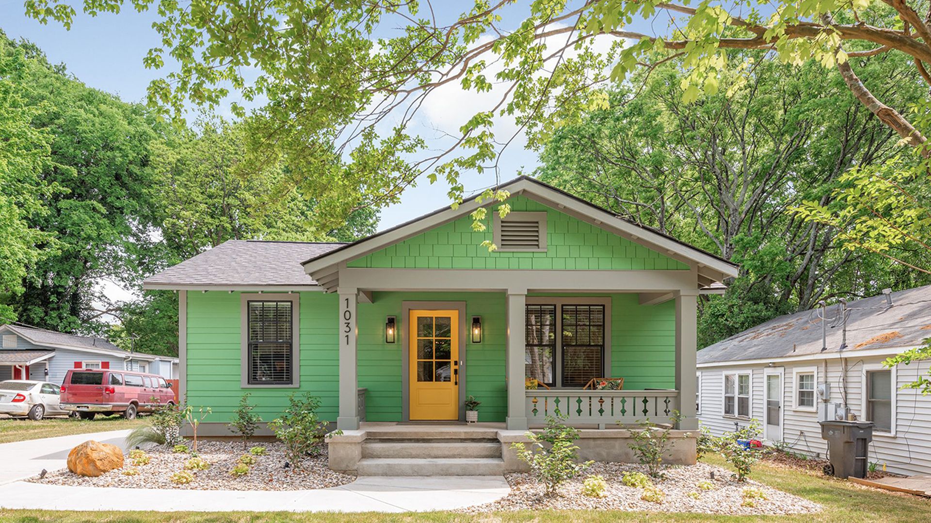 Why we love it: The colorful exterior of this bungalow is one of the many cheerful highlights of this house.