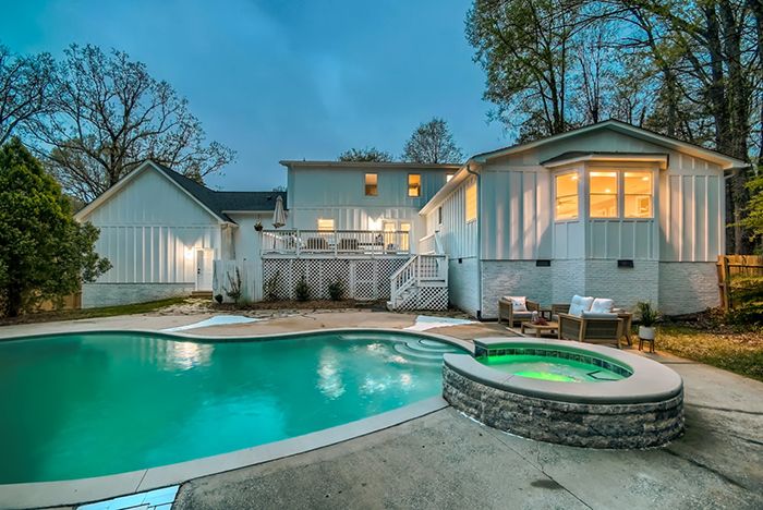 - Notable features: full rocking chair front porch, hardwood floors, spacious laundry room, glass shower, large bedrooms, in-ground pool, and hot tub.
