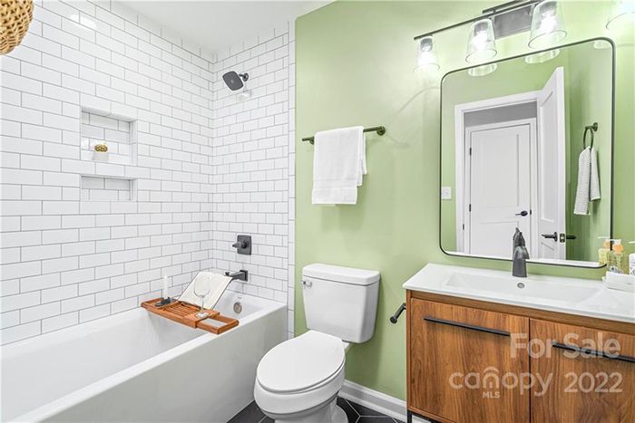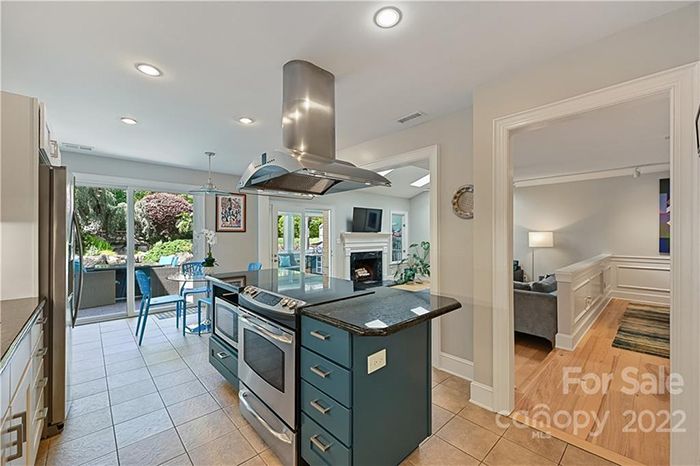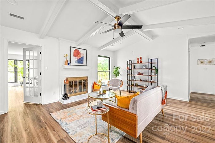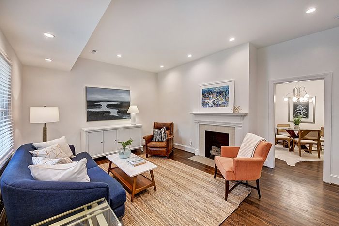 - Notable features: Fireplace, hardwood floors, shaded porch, navy cabinetry, large walk-in closet, built-in closet shelving, fenced-in backyard and spacious bedrooms.