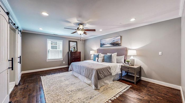 - Notable features: Sliding barn doors, hardwood floors, custom benches, spacious bedrooms, tray ceilings, large deck and fenced backyard.