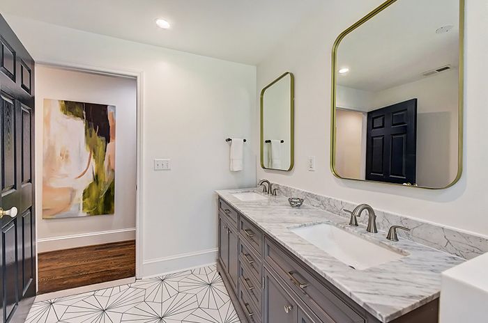 Why we love it: The sleek kitchen design opens the space of this stylish cottage home.