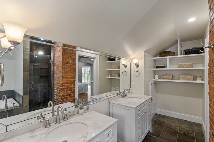 Why we love it: This cottage home is packed with a couple of spaces that bring the outside in, plus the brick bathroom and exposed staircase are among some of the home’s special features.