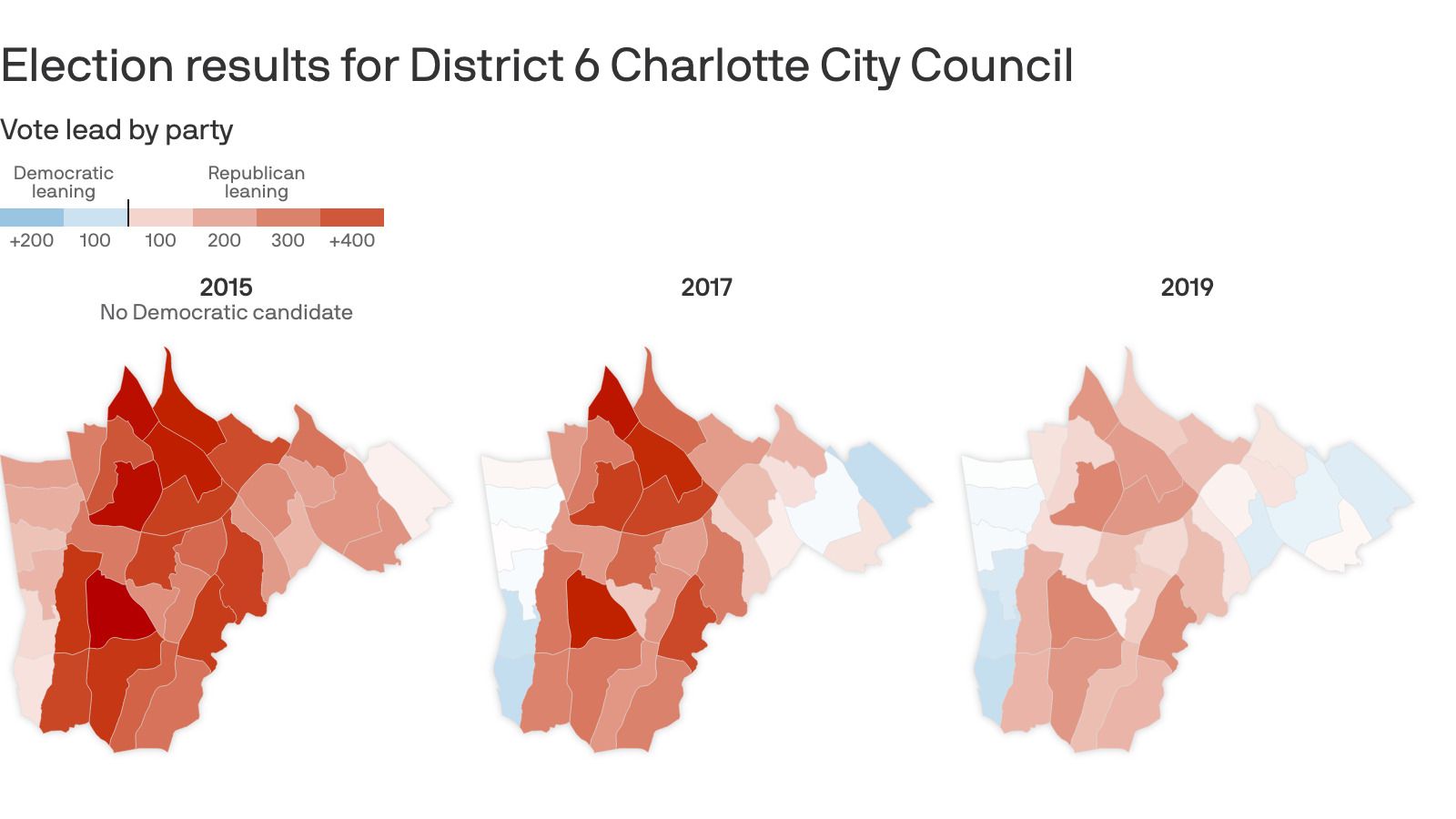 - Democrats now represent District 6 in the state legislature, notes Eric Heberlig, UNC Charlotte professor of political science and public administration. In the 2019 mayoral elections, its precincts supported Mayor Vi Lyles, also a Democrat.