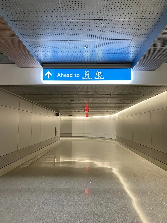 This phase debuts the west subterranean walkway, which will take you from the terminal lobby to the car rental and hourly parking area without having to cross over several lanes of traffic.