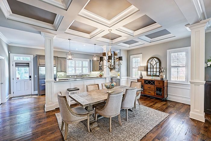 Why we love it: The vaulted ceilings help expand the first floor while the open kitchen layout pulls you in.