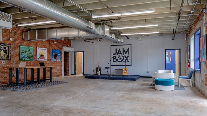 Highlights: Coworking meets rehearsal space here. The common area acts like flex desks in a typical coworking setting.