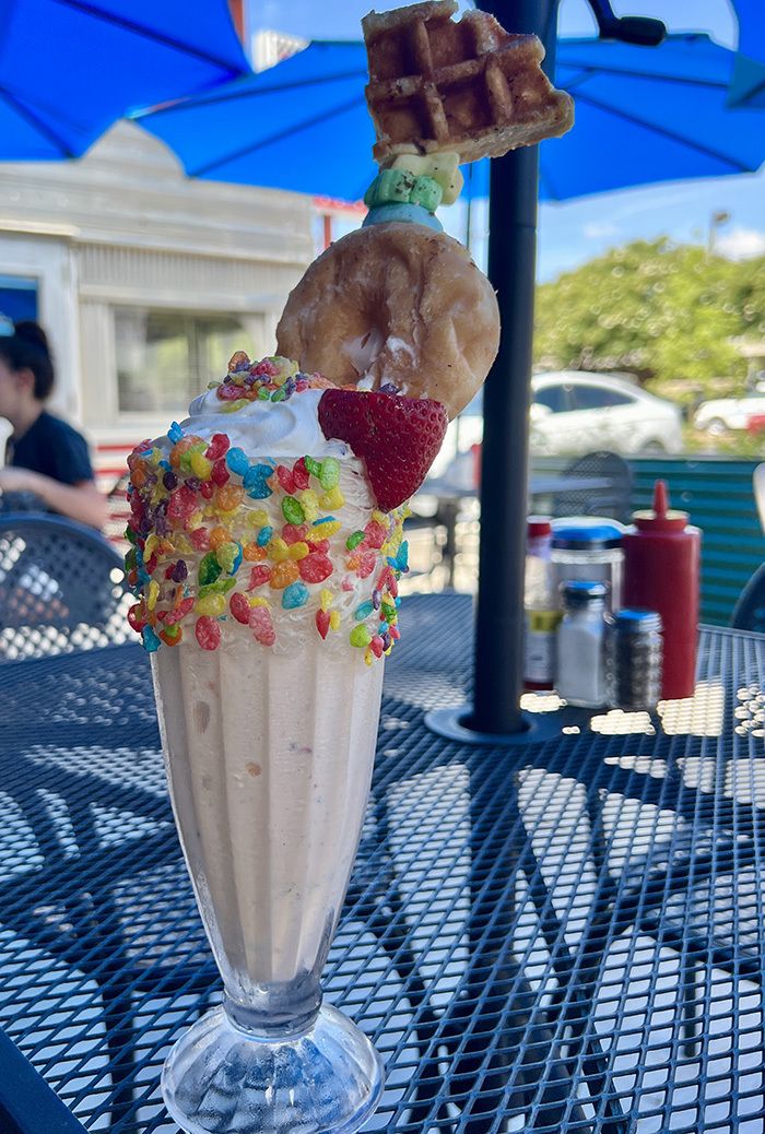 This $14 sugar-loaded fruity pebbles milkshake at Mattie’s Diner comes topped with a cake donut, marshmallows and a frosted waffle. I also tried “The Junkyard” homefry bowl and the disco fries with mozzarella and gravy. It’s delicious, and also a recipe for food coma. — Emma Way, deputy managing editor, Axios Local