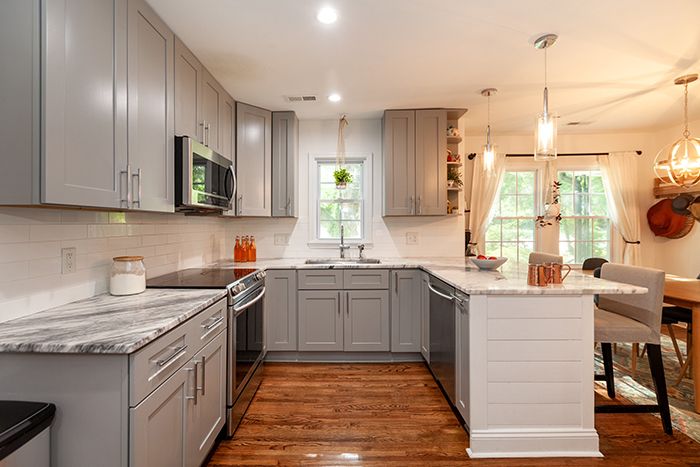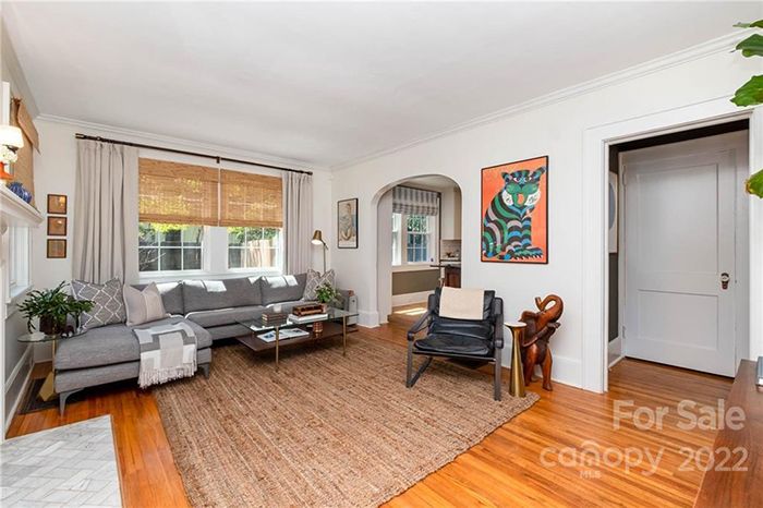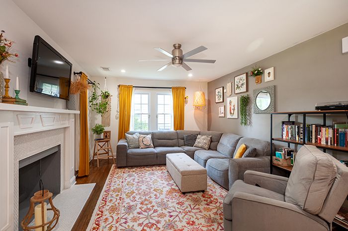 Why we love it: The curb appeal on the door and as you pass through the living room into the kitchen is a charming touch to this cottage home.
