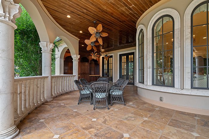 - The home has multiple terraces, balconies and private patios with a sweeping views of the lake shoreline.