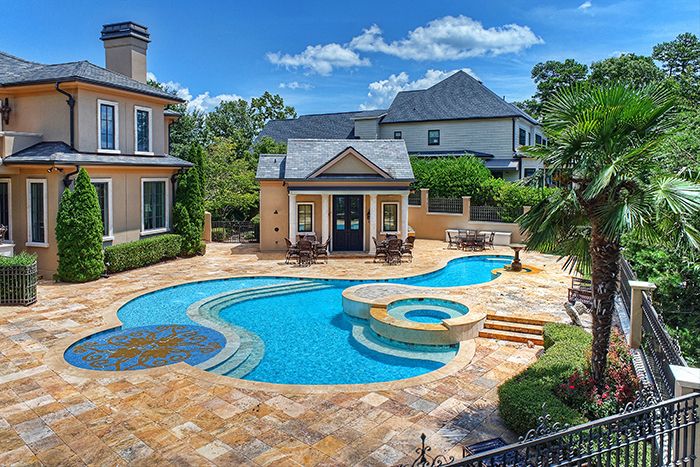 - The pool house and outdoor kitchen create a space to gather with guests.