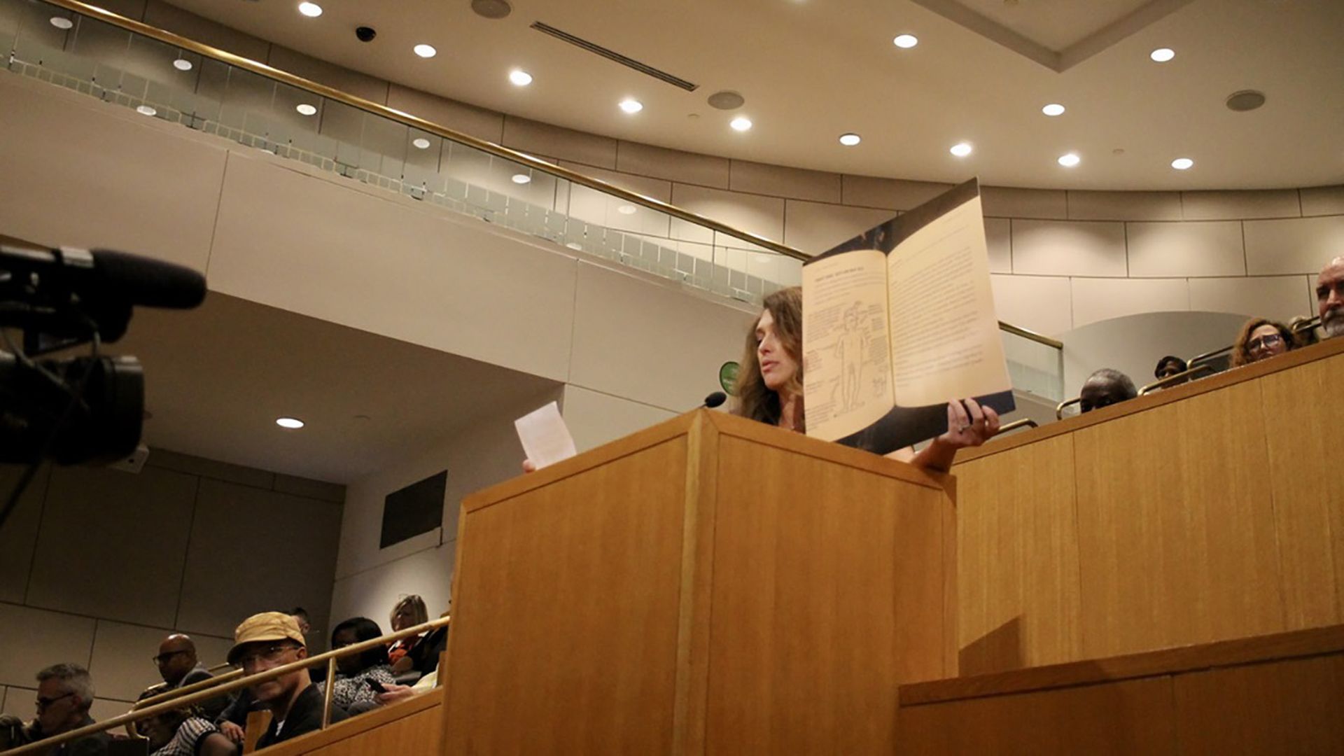 At an October Charlotte-Mecklenburg Schools board meeting, a mom reads a chapter from "This Book is Gay" that explains "boy-on-boy sex.” Photo: Alexandria Sands/Axios