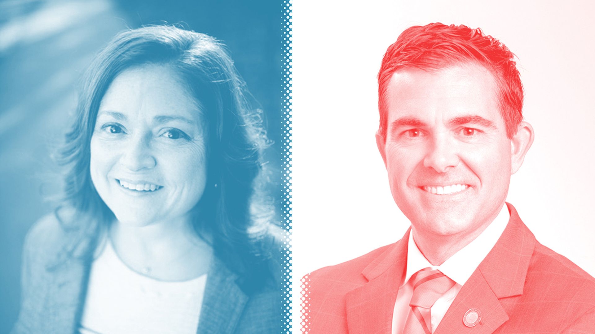 Photo illustration: Axios Visuals. Photo: Courtesy of the campaigns of Christy Clark and John Bradford