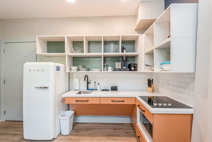 - Every unit has one bed, kitchenette and living space. Larger units have separate living spaces and a full kitchen.
