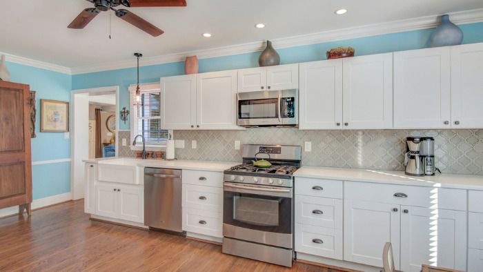 - Notable features: Home office, large double front porches and back covered porch, designer kitchen, Electrolux appliance package, two wine refrigerators, butcher block counters, white oak hardwood floors and freestanding tub.