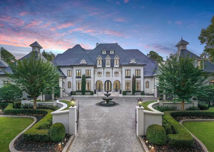 Highlights: The two-story home sits on four acres with views of a lake that has a fountain in the center. It has a chef’s kitchen, an eight-car garage, guest quarters, his and hers walk-in closets and a spa-like bathroom.