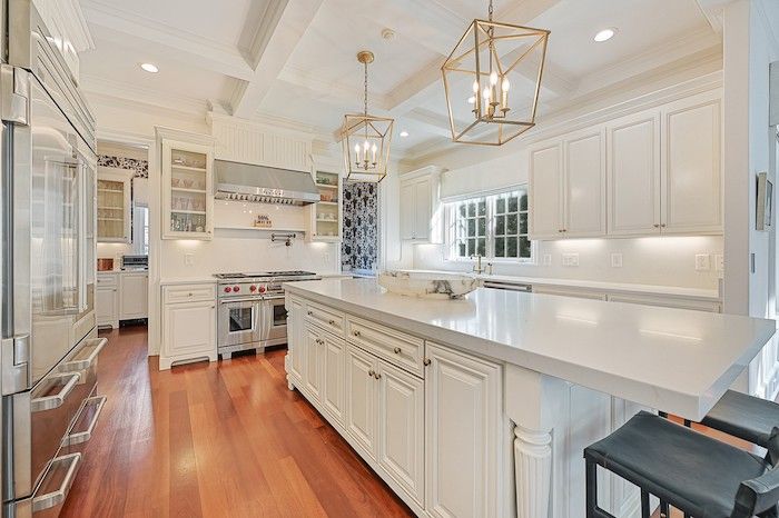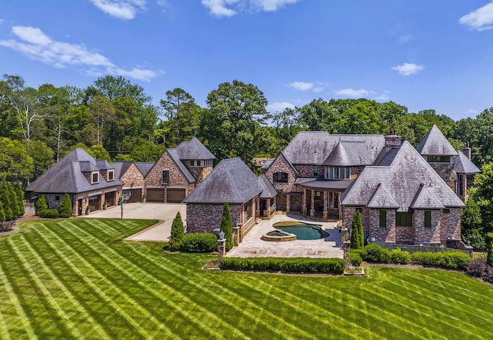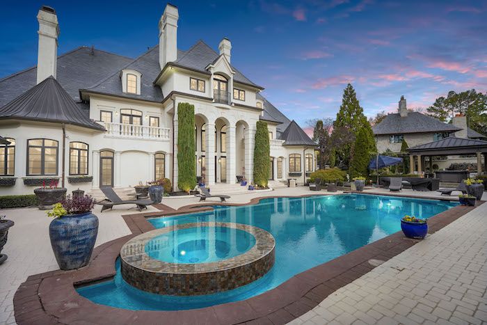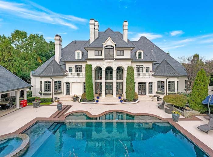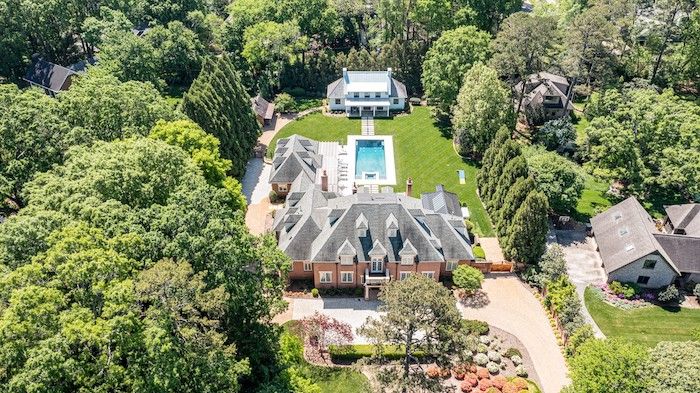 Highlights: The main house is almost 8,000 square feet, with two master bedrooms and three custom closets. It also has a chef’s kitchen, large center island and quartz countertops, an elevator, a gym, a three-car garage, a covered heated porch, pool and an outdoor kitchen.