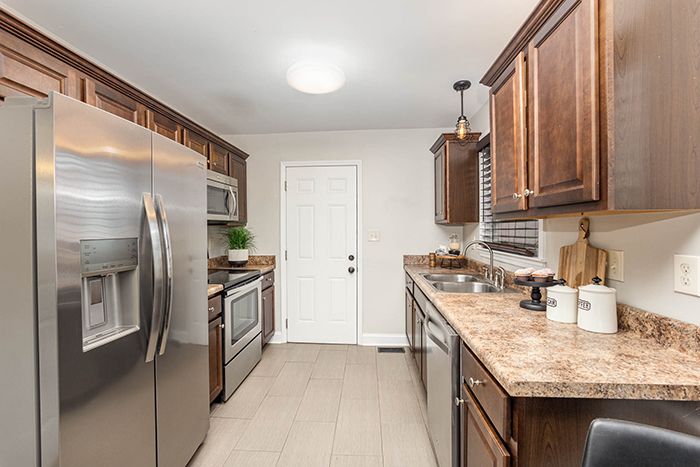 - Notable features: shaded porch, open kitchen layout, tile backsplash, large laundry room, hardwood floors, walk-in closet, kitchenette, spacious deck and a two-car garage.