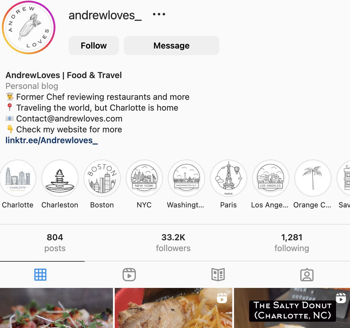 AndrewLoves is a Charlotte-based food blogger whose Instagram Account has over 33K followers.
