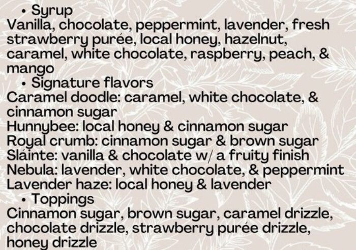 - You’ll be able to fully customize your order with a range of house-made syrups and both dairy and non-dairy milk options.