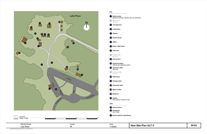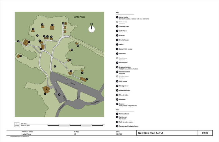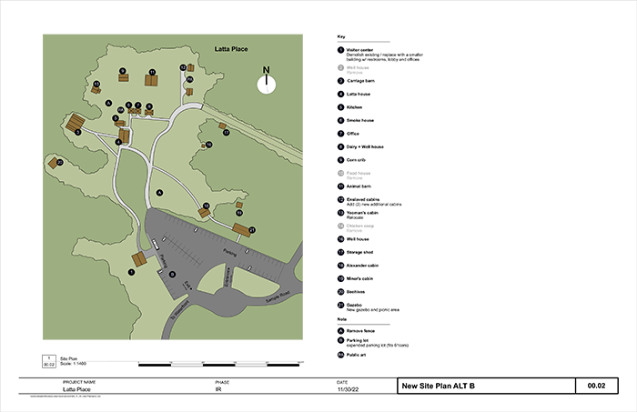 - Alternative A calls for a new visitor center with a research/education area, a gazebo, exhibits with interpretive videos, recreating additional slave dwellings and an “audio soundscape” experience inside the main Latta House.