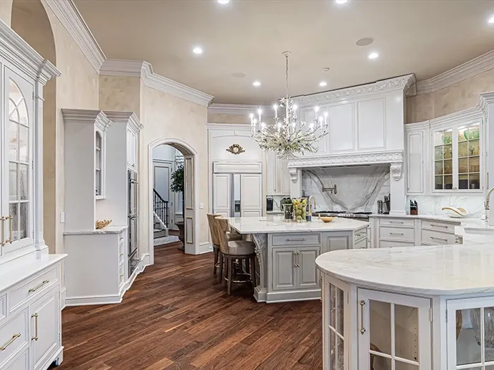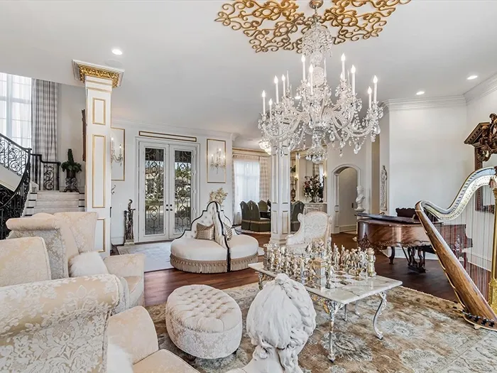 - Lowe says that renovations include, in part, one-of-a-kind chandeliers, columns decorated with gold leaf, and a fully renovated kitchen.