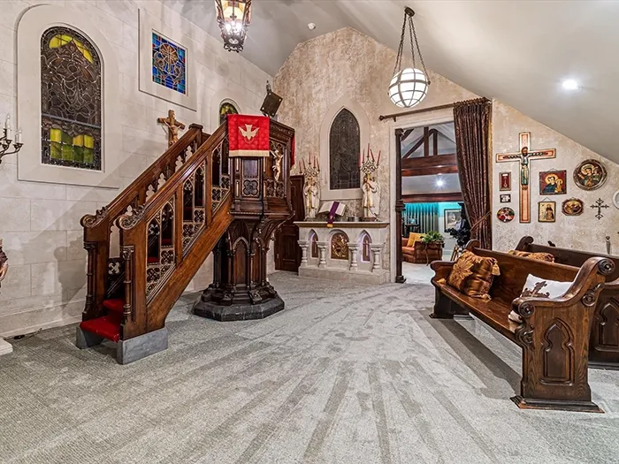 Bonus: A new prayer room with a pulpit, two pews and a space for communion is part of the more extensive interior additions made on the home’s third floor.