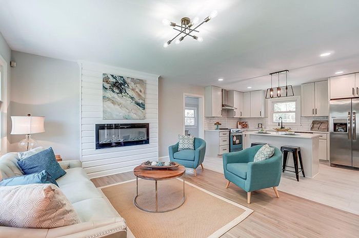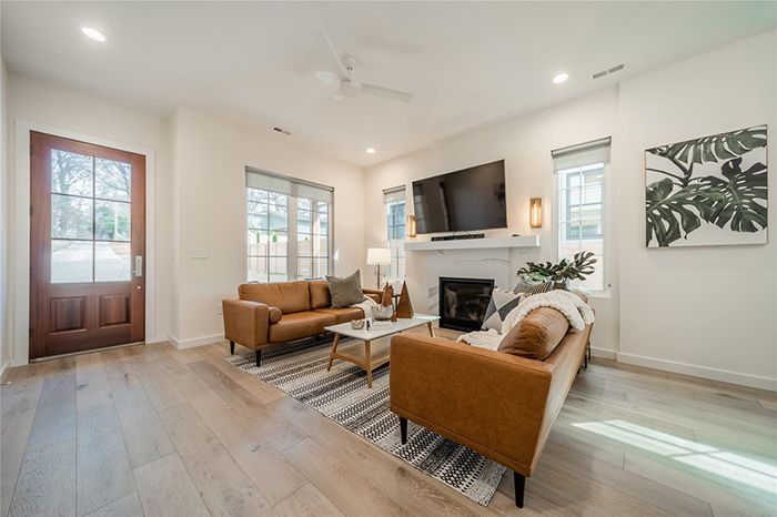 - Notable features: fireplace, open layout, modern light fixtures, quartz countertops, subway tile backsplash, stainless steel appliances, large backyard.