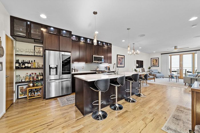 - Notable features: open layout, hardwood floors, built-in kitchen barstools, open shelving, stainless steel appliances, spacious bedrooms, walk-in closets and rooftop terrace.